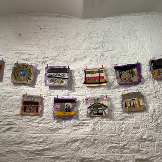 Art from Pigeons in the Subway book on display at Loop of the Loom, NYC